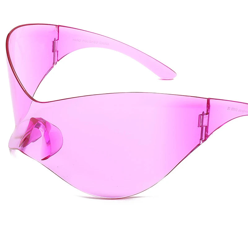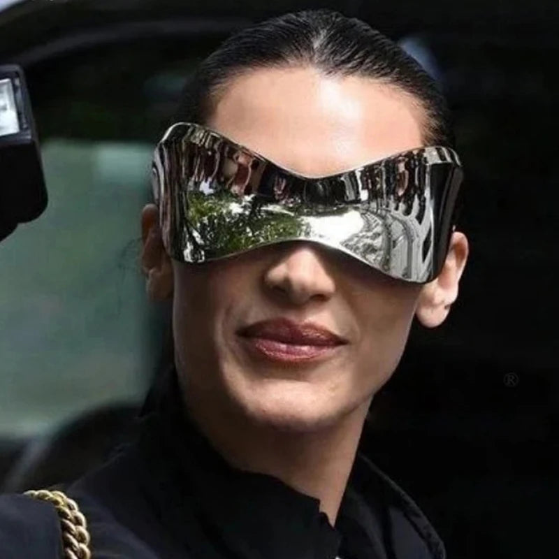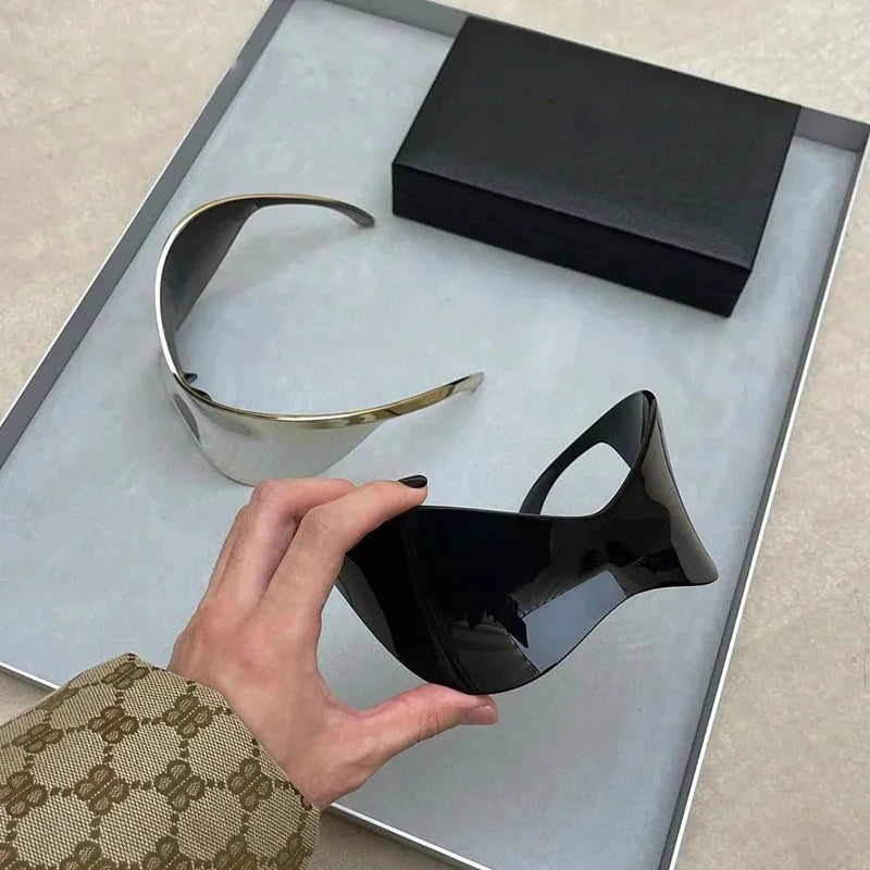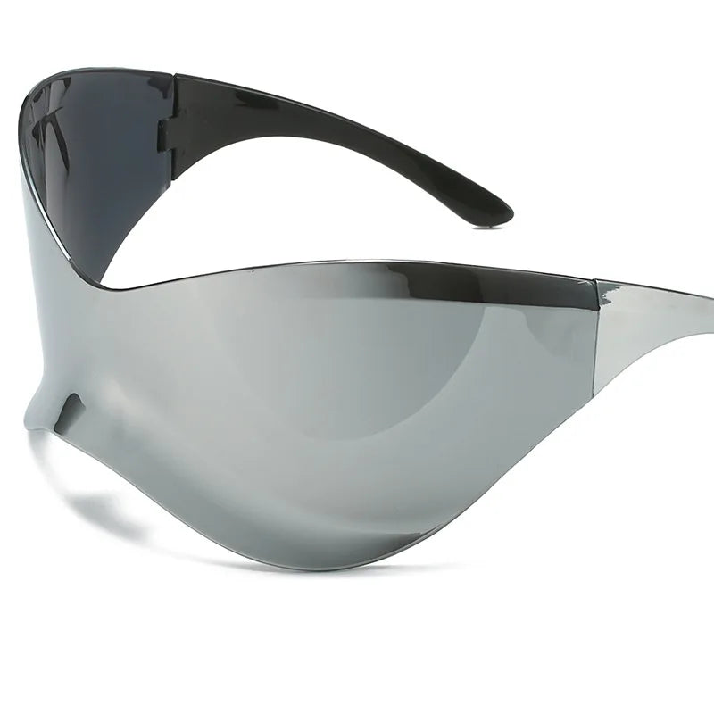 Questi occhiali da sole oversize senza montatura combinano innovazione e design audace. Con uno stile Y2K punk e una forma avvolgente sportiva, offrono protezione ottimale e un aspetto futuristico ideale per il ciclismo o per chi ama un look distintivo. Leggeri e comodi, sono perfetti per chi cerca un accessorio funzionale e di grande impatto visivo.