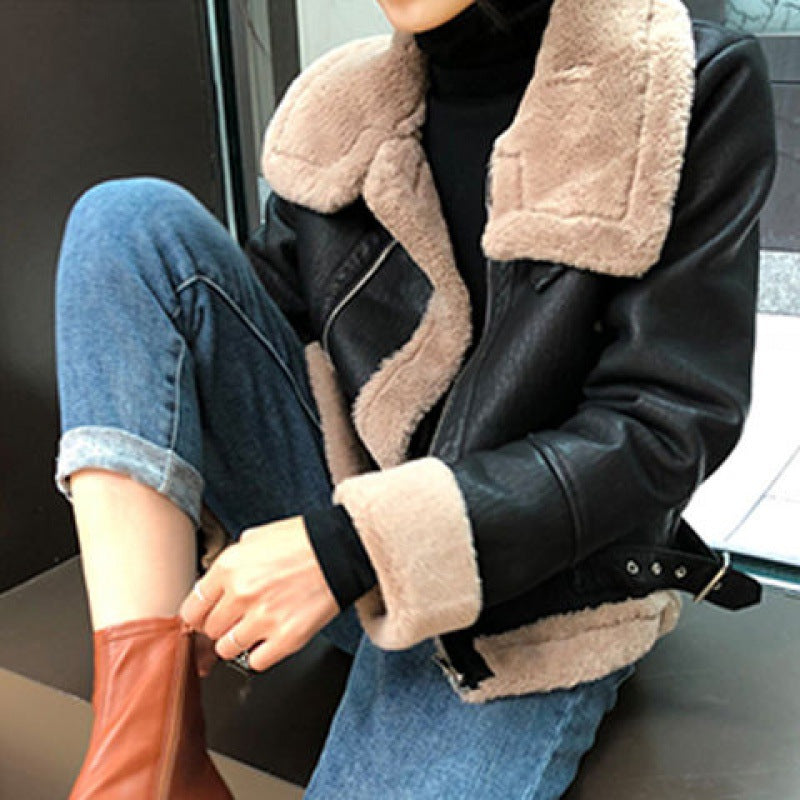 velvet thick PU leather motorcycle suit montone - Apricot / S- MUST HAVE| badpeople.it