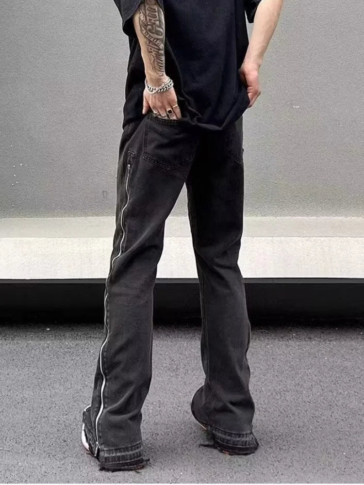 Streetwear Design con cerniera Lavato Nero Slim Jeans Pantaloni per uomo
