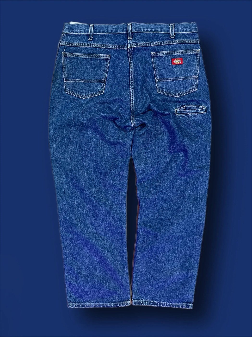 Questi jeans Dickies da 38x30 hanno un lavaggio blu scuro adatto a qualsiasi occasione. Grazie alla robustezza della loro fabbricazione, possono resistere a un uso intensivo ed essere riutilizzati di stagione in stagione. Il lavaggio rende questo capo facile da abbinare ad altri colori.