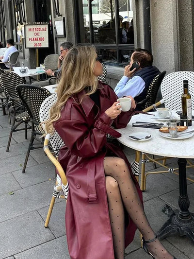 Trench Black Oversized Long Waterproof Leather Trench Coat