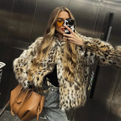 Gradient Cropped Fluffy Fur Jacket Coat eco pelliccia donna