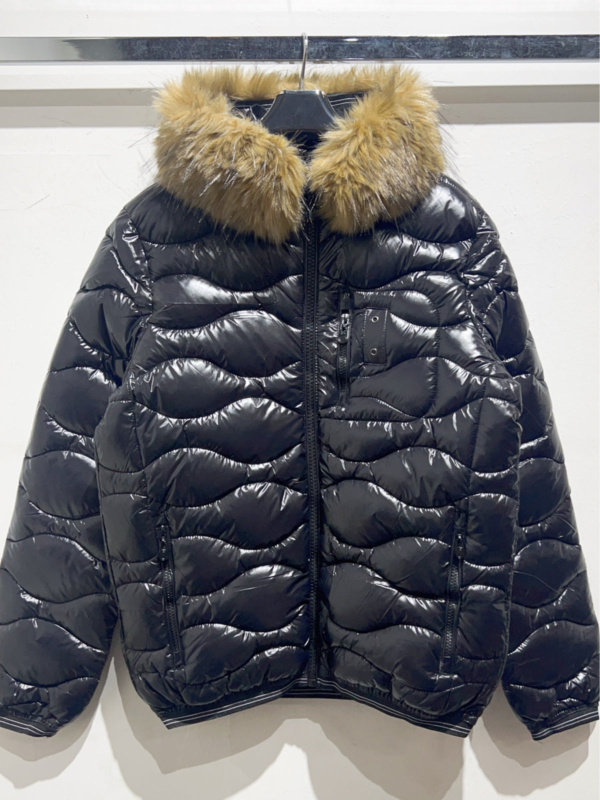 Piumino cappuccio fur nero uomo
