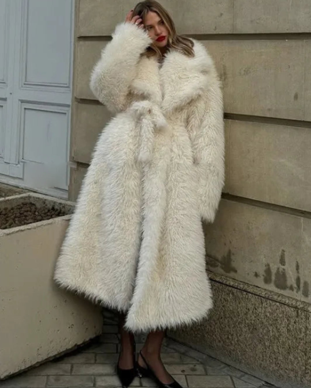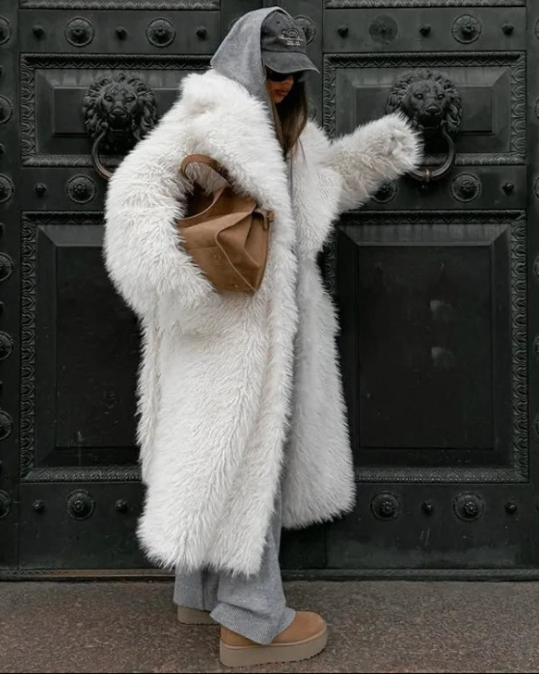 Pelliccia lunga ecologica donna - white lamb fur coat / S- MUST HAVE (immagine 2)| badpeople.it