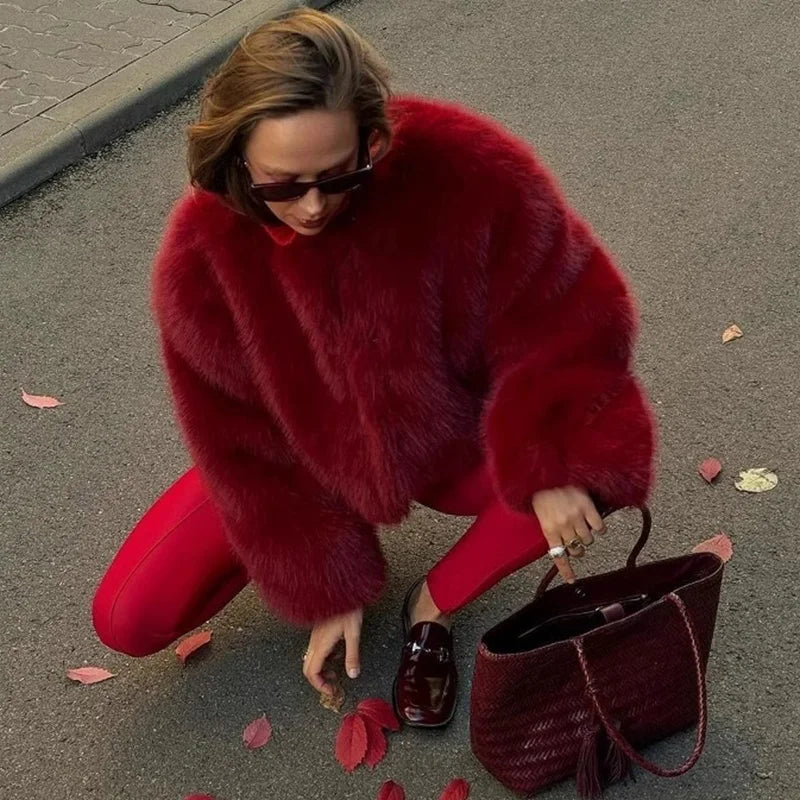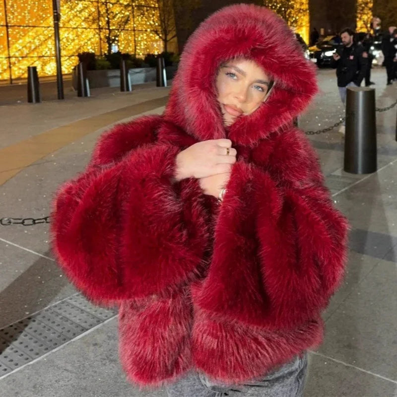 Pelliccia sintetica rossa - Rose Red Hoodies / XS- MUST HAVE| badpeople.it