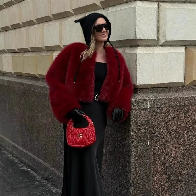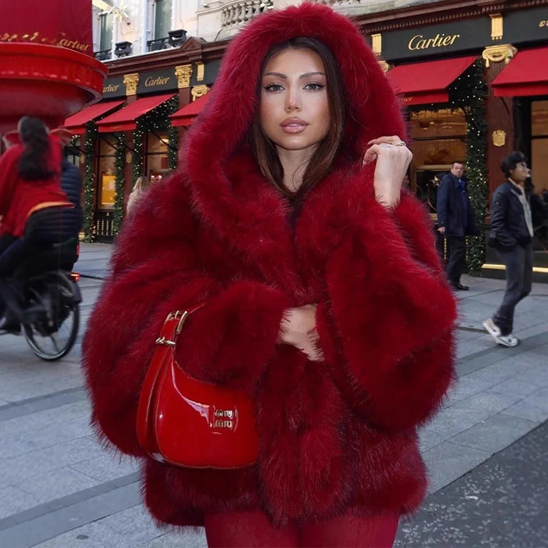 Pelliccia sintetica rossa - Rose Red Hoodies / XS- MUST HAVE (immagine 2)| badpeople.it