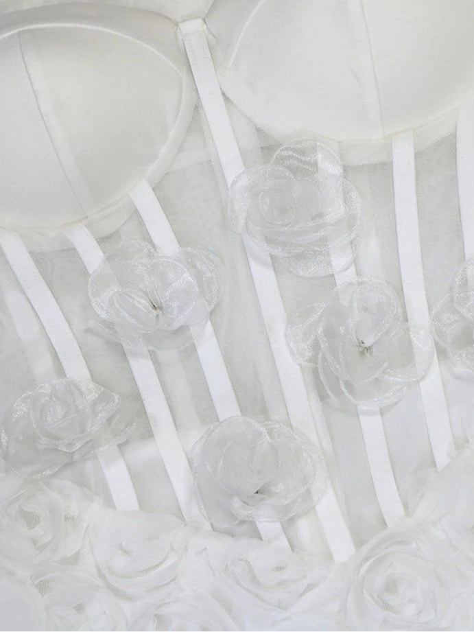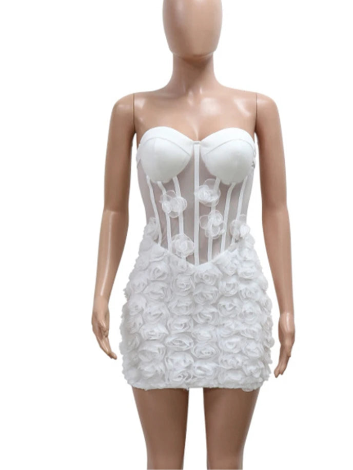 3D Flower See Through Strapless White Mini Dresses