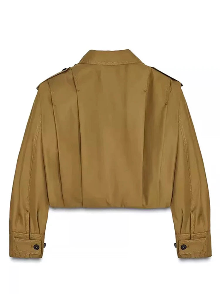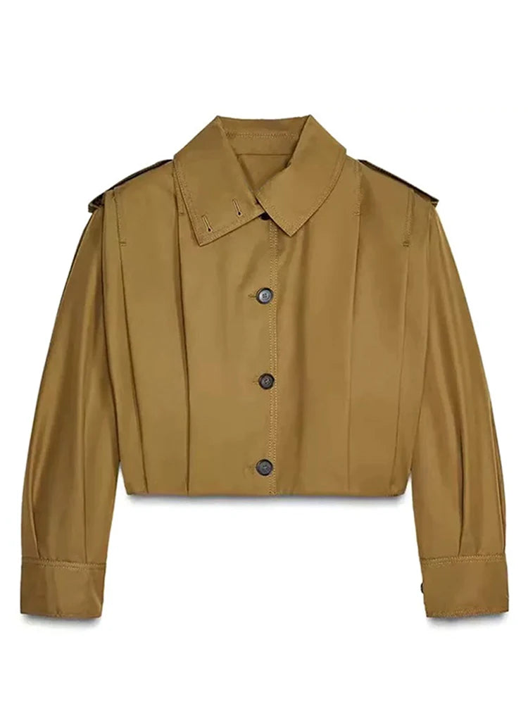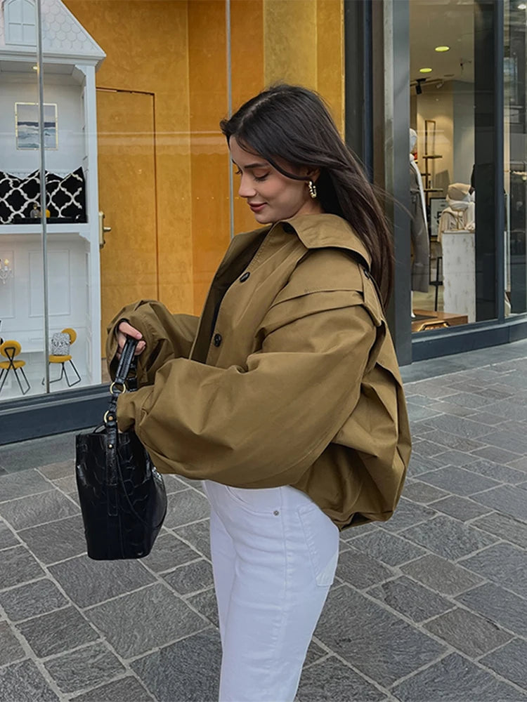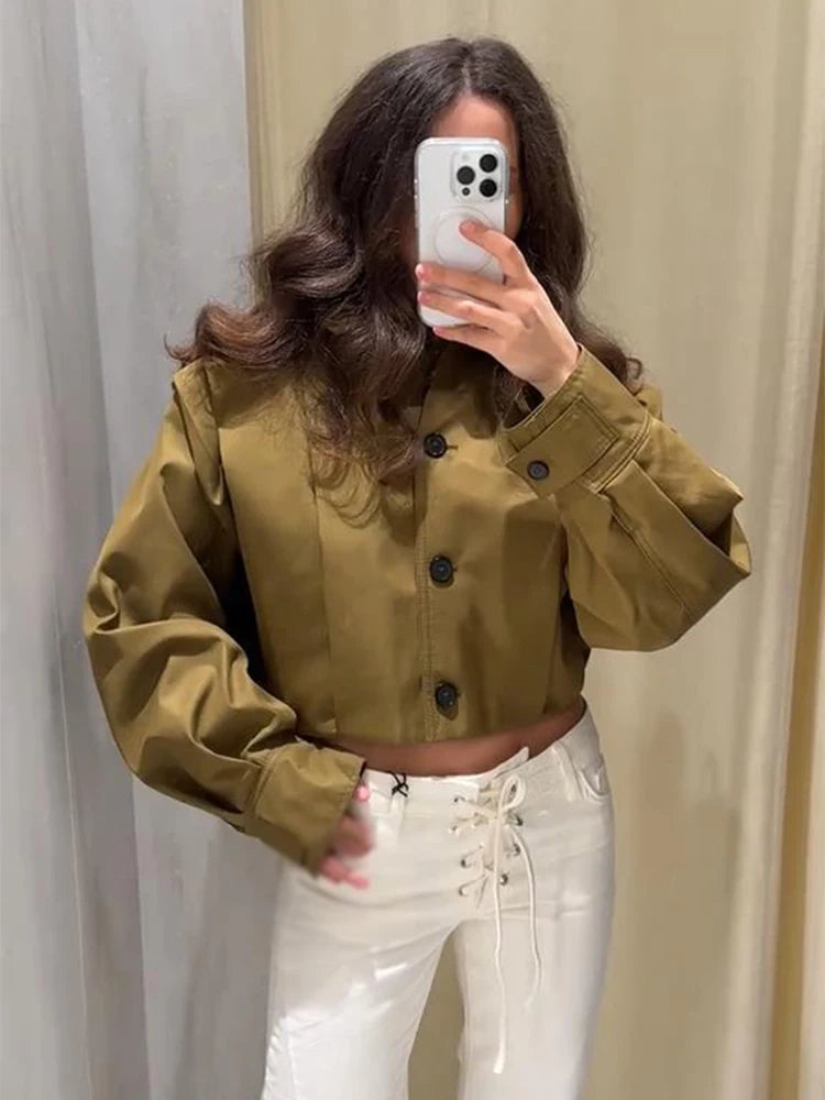 Il design con rever e chiusura monopetto unisce stile e praticità, mentre la manica lunga garantisce comfort nelle giornate più fresche. Il verde intenso aggiunge un tocco di freschezza al tuo guardaroba, rendendo questo capo versatile e alla moda per ogni occasione urbana. Scegli un look contemporaneo e femminile con questo crop outwear, ideale per chi ama distinguersi con eleganza senza rinunciare alla comodità.
