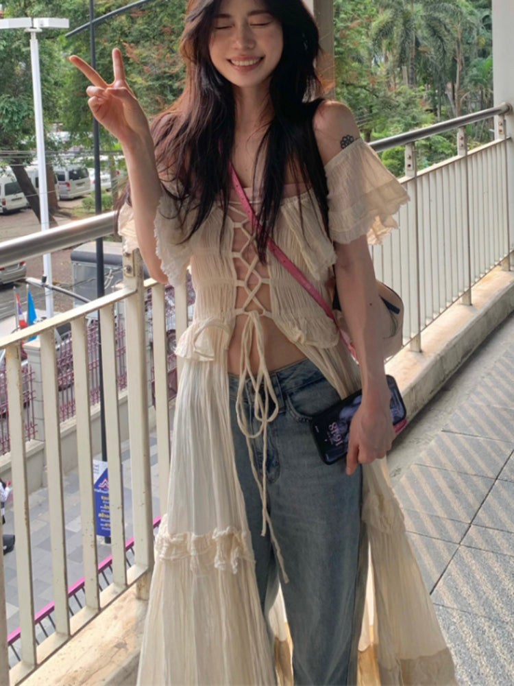 Descubre nuestro top largo de mujer con acabado. Confeccionado con la mejor calidad, este top presenta un corte largo y detalles entallados que le dan a la prenda un aspecto único y elegante. Una elección perfecta para cualquier ocasión especial.