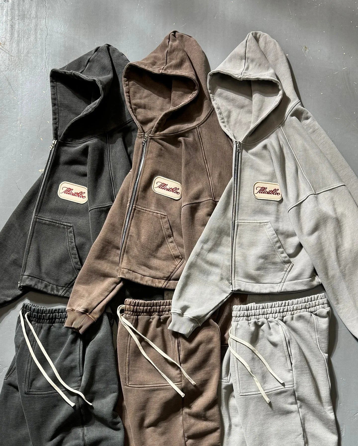 American Solid Color Cotton Oversized Sweatshirt Men Two Piece - Brown suit / M- HYPE (immagine 11)| badpeople.it