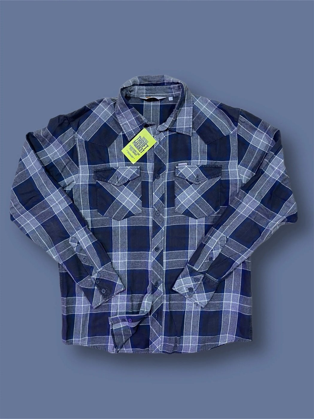 Camisa azul franela escocesa Carhartt talla L- Thriftmarket| badpeople.it